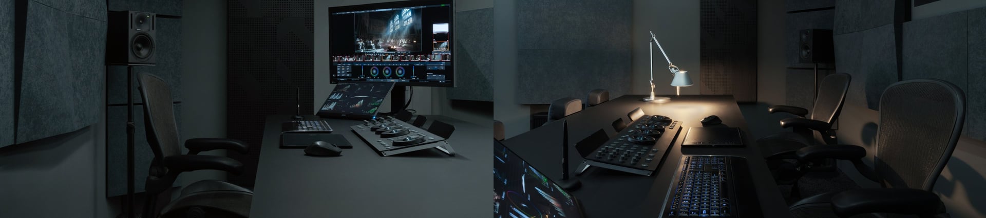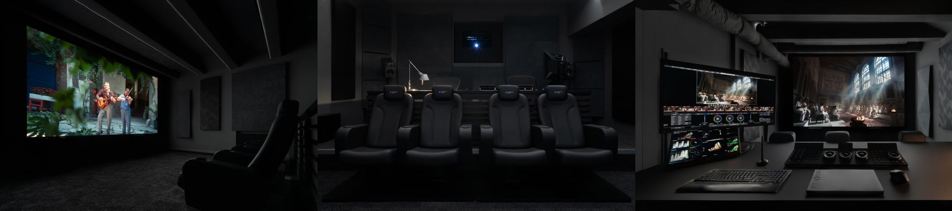 SONY BVM-HX3110 AND EIZO CG3100X (TRUE 4K) REFERENCE MONITORING, BARCO C12 PROJECTION ON A HARKNESS MICRO-PERFORATED SCREEN (4.25 × 2.36 M) WITH DOLBY PLAYBACK, GENELEC 5.1 (EXPANDABLE TO 7.1.4), CALIBRATED VIA LIGHT ILLUSION COLOURSPACE WITH KONICA MINOLTA CS-200.
